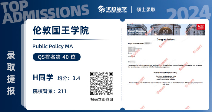 【倫敦國王學(xué)院】211GPA3.4,輕松斬獲KCL公共政策碩士offer!