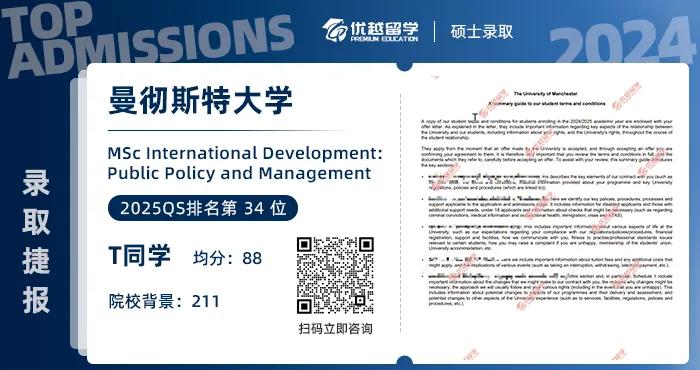 錄取院校:曼徹斯特大學——MSc International Development: Public Policy and Management