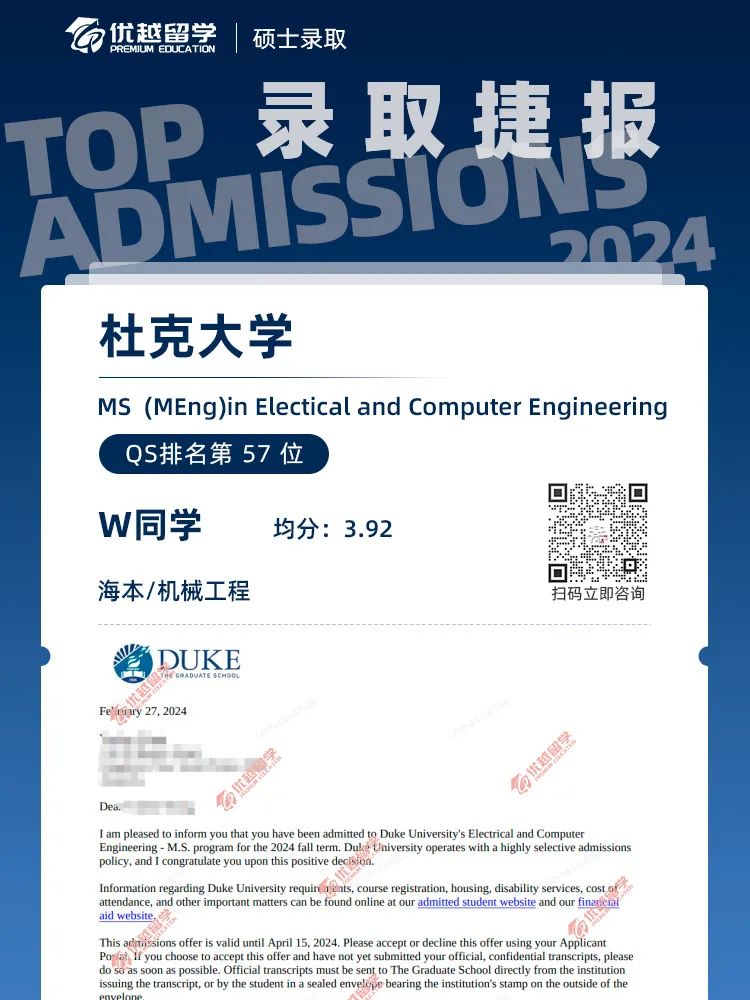 錄取院校:杜克大學