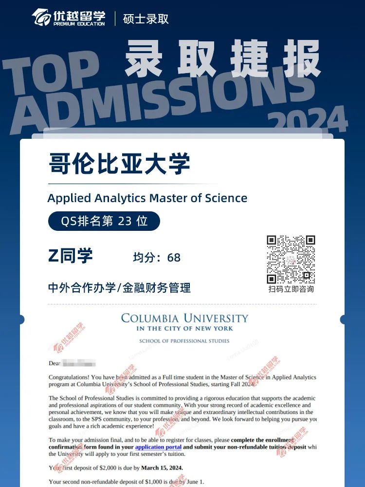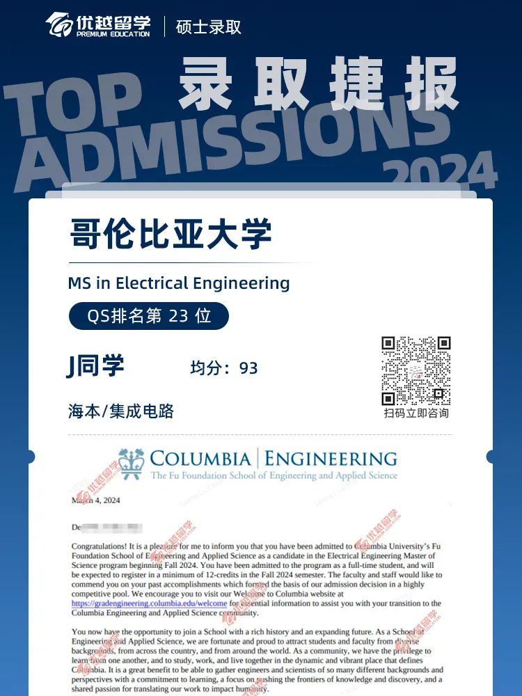 以上是【【哥倫比亞大學】offer來襲!美國大學集中發offer了!】相關的全部內容,查看更多【offer榜單】、【名校案例】相關資訊可前往【優越留學】首頁!世界名校申請,找優越留學!選校定校、申請規劃、文書寫作、背景提升、方案定制一套搞定!點擊【在線咨詢】,優越留學顧問24h在線為您一對一解答!