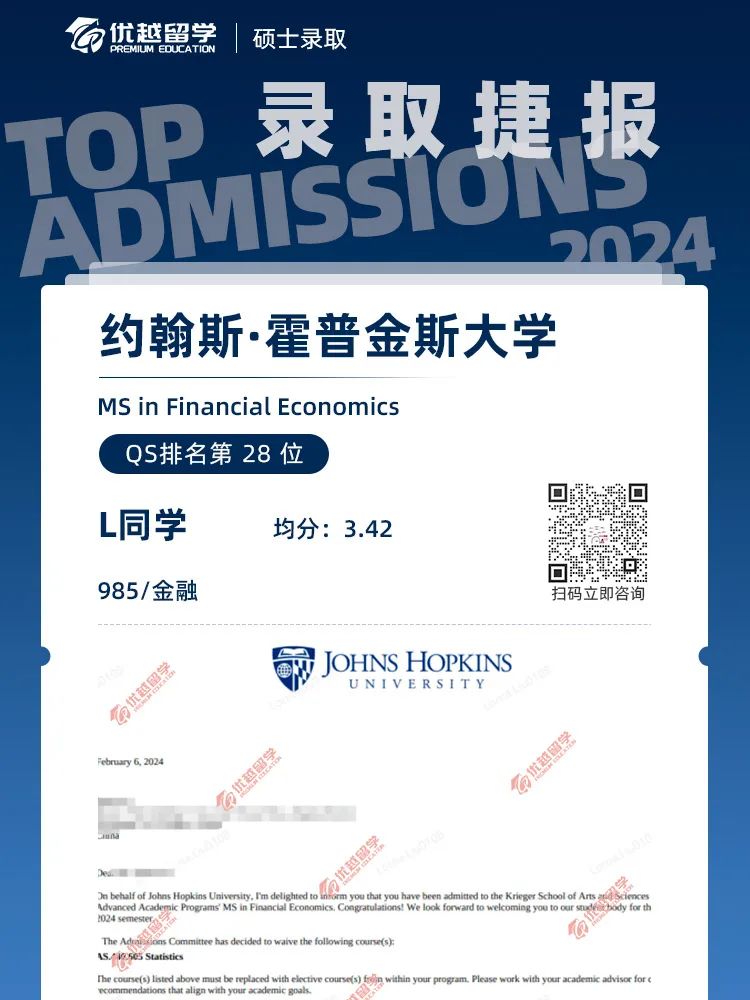 錄取院校:約翰斯霍普金斯大學