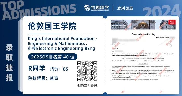 R同學是體制內普通高中生,由于所在地區高考競爭壓力巨大,高三時著手申請英國本科留學。英國留學申請成功拿到KCL本科預科offer,下面一起看看詳情吧。