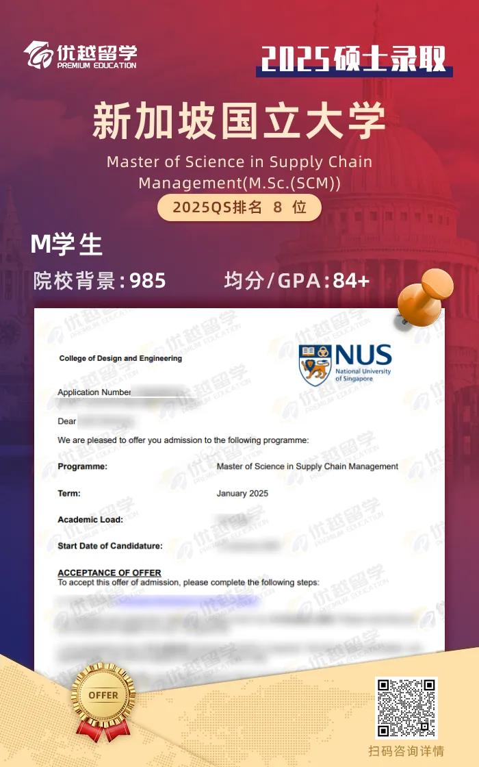M同學來自國內一所985大學工商管理專業。為了有更好的職業發展決定出國讀研,出國留學申請成功拿到世界排名第8的新加坡國立大學碩士offer,下面一起看看詳情吧。