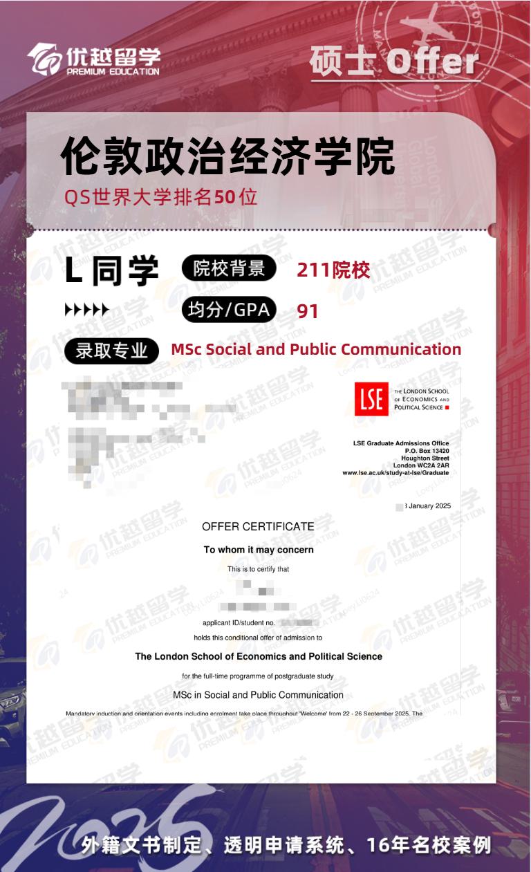 錄取專業:LSE-MSc Social and Public Communication