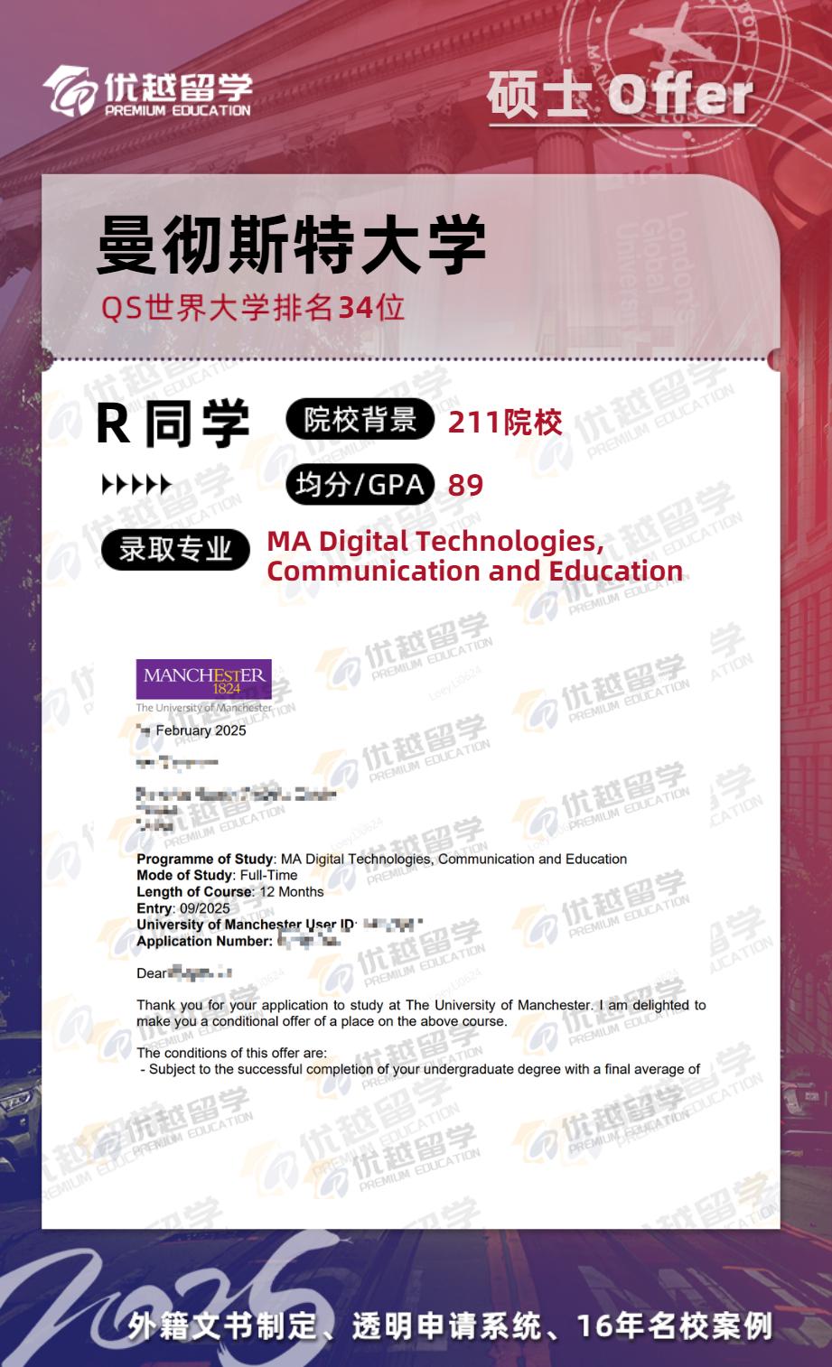 P學長是在去年6月來到優越的,用時4個月的時間,最終跨申上岸曼大國際教育專業。接下來,就跟優越君一起看看,P學長為了英國研究生留學申請都做了哪些動作~