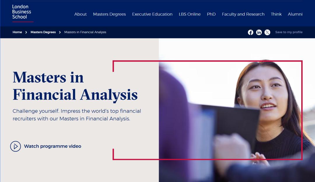 LBS倫敦商學院 的金融分析碩士 (MFA) 為您提供最先進的金融工具、金融市場和全球商業(yè)理解的堅如磐石的基礎。MFA 平衡理論與實踐和現(xiàn)實世界的商業(yè)接觸,為您提供與國際機構和從業(yè)者聯(lián)系并建立國際網(wǎng)絡的機會。
