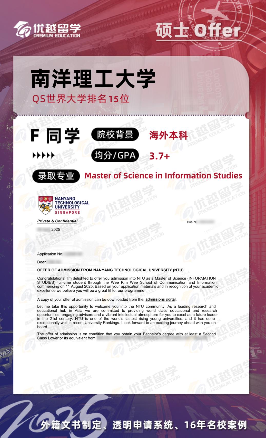 C同學來自國內一所雙非大學機械制造專業。為了有更好的職業發展決定出國讀研,最終新加坡留學申請成功拿到南洋理工大學商業碩士offer,下面一起看看詳情吧。