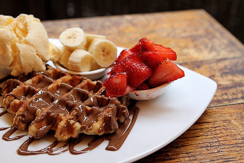 這里說(shuō)的華夫餅可不是我們國(guó)內(nèi)見(jiàn)到的已經(jīng)包裝好放到貨架上隨便挑選,味道脆脆的甜甜的餅干哦。這里說(shuō)的華夫餅是英國(guó)人超愛(ài)的一款經(jīng)典小吃,源自比利時(shí),是一種用專(zhuān)門(mén)的烤盤(pán)烤制而成,剛出爐的最好吃,熱乎乎的軟軟的,散發(fā)出誘人的香味。其實(shí)做法很簡(jiǎn)單,市場(chǎng)上有專(zhuān)門(mén)做華夫餅的機(jī)器,有興趣的可以買(mǎi)回家自己做。