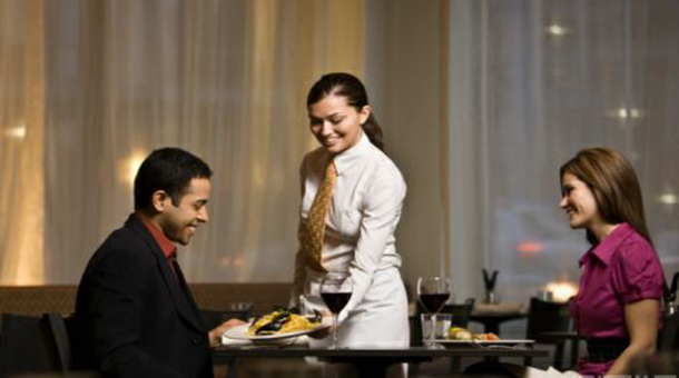 如果是在中檔的餐廳,服務員一般會比較忙,所以你可以先看著離你較近的服務員,等他注意到你時,你只需點一下頭,他就明白你的意思了。