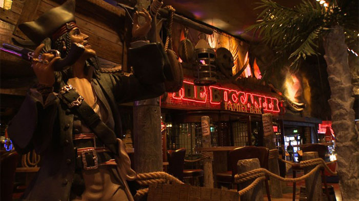 一家合家歡型的海盜主題餐吧,裝潢個性十足。墻壁上掛著海盜的照片,走幾步你還會踩到藏有寶藏的地板夾層,好像自己真的置身于一條海盜船上,什么優雅淑女統統拋到了一邊,只想像一個海盜一樣大快朵頤。內設吧臺和電視機,可以選擇的肉類有牛肉,火雞和火腿。味道不錯,服務員也非常的健談。而且周末還會有“周末燒烤”( Sunday Carvery)優惠活動,只需8鎊左右。支持所有主流銀行的刷卡付現。