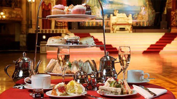 主食完后,是時候享受一下英式下午茶了。還有什么比坐在布萊克浦塔頂,鳥瞰整個城市更為愜意的下午茶地點呢?宴會廳中央是用來舉行黑池舞比賽的大舞池,餐桌排列在四周,大廳里彌漫著淡淡的麝香氣味,再點一杯英國傳統的下午茶,像是一下子穿越回了中世紀。