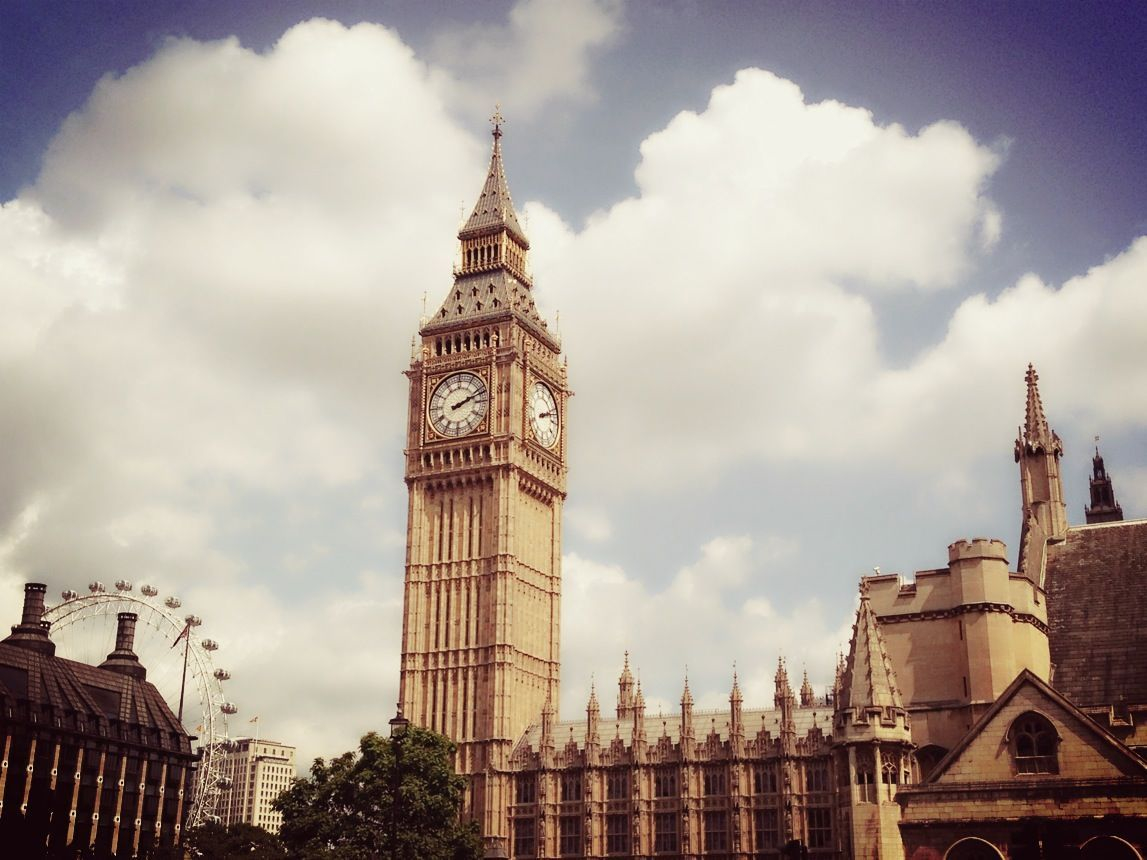 大本鐘(Big Ben)代表了英國古典文化,是倫敦的標志,也是英國人的驕傲。大本鐘即威斯敏斯特宮鐘塔,英國國會會議廳附屬的鐘樓 (Clock Tower) 的大報時鐘的昵稱。大本鐘巨大而華麗。大本鐘從1859年就為倫敦城報時,根據格林尼治時間每隔一小時敲響一次,至今將近一個半世紀,盡管這期間大本鐘曾兩度裂開而重鑄。現在大本鐘的鐘聲仍然清晰、動聽。自從1859年投入使用后,英國政府每隔五年就要對大本鐘實施維護,包括清洗鐘體、替換大本鐘的報時輪系和運轉輪系等。鐘樓高95米,鐘直徑9英尺,鐘重14 噸,時針和分針長度分別為2.75米和4.27米,鐘擺重305公斤,每15分鐘響一次。,四個鐘面的面積有兩平方米左右,每個鐘面各由312塊乳白色玻璃鑲嵌而成。大本鐘自1859年被安裝在鐘樓上。成為世界上第二大的同時朝向四個方向的時鐘。每個鐘面的底座上刻著拉丁文的題詞,“上帝啊,請保佑我們的女王維多利亞一世的安全。”