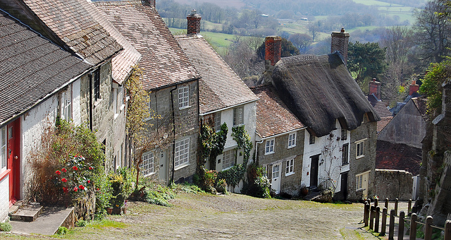 這里看過去處處都是濃濃的英國味兒,狹窄的街道兩旁以此排開的古老的農舍、教堂和修道院,還有阿爾弗雷德大帝時期鋪成的鵝卵石路,猶如置身于古老油畫一般。這里的風景很好,站在山上登高遠眺,讓人心曠神怡。