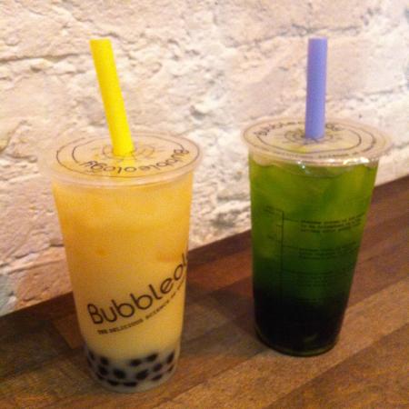 英國的珍珠奶茶沒有上海奶茶的奶味重,主要以果味為主,從芒果到熱情果再到姜味茶。這里的珍珠和椰果也可以選不同的果味,這個在上海是沒有的。