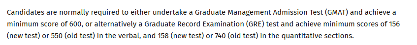 一般要求有3年以上管理工作經驗,對本科專業背景要求也不是很高,因為涉及的小組討論、寫作比較多,對英語的要求也較高,一般要求IELTS6.5分以上,部分商學院還會要求GMAT成績,要求從550分至650分不等。