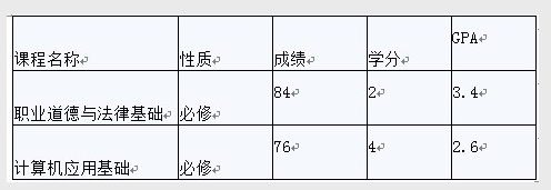 如上圖所示,以圖為例,計算方法即為: GPA=(2*3.4+4*2.6)/(3.4+2.6)