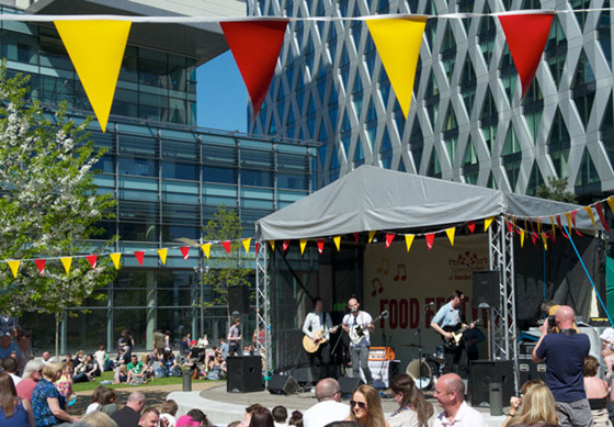 ??當然,還有更多的活動等著你,比如經常會出現的美食市場或者夏天的美!食!節!請自由腦補一下藍天白云,綠草如茵,席地而坐,水鳥環繞,美食相伴,樂哉樂哉。 即使是平時來玩兒,相信你也不會失望。在這里,除了Wagamama,Nando’s等各種連鎖快餐店,你還可以找到像Damson這樣的獲獎餐廳,又或者是別有格調的露天酒吧。而在這不遠處,還有Lowry Outlet和Theatre帶給你驚喜。 雖然這個outlet 并不是時尚大牌匯集的地方,卻很容易在那里淘到價廉物美的家庭用品,然后可以順便表揚一下自己還真是持家有道的好孩子。 在outlet 對面的文化中心是文藝青年們不能錯過的地方。 如果是附近的居民,登記后還常常能享受到各種劇目開場前低至5鎊到10鎊的優惠價格。另外,TED x Salford去年也是在這里舉辦,各家之言,思維碰撞,一天講座聽下來卻像是享受了一場盛宴,十分推薦。對了,你知道嗎?曼徹斯特足球俱樂部其實距離這里并不遙遠,步行也就10 分鐘。 所以,如果是打算來看球的朋友,可以考慮看球之余,豐富一下行程。