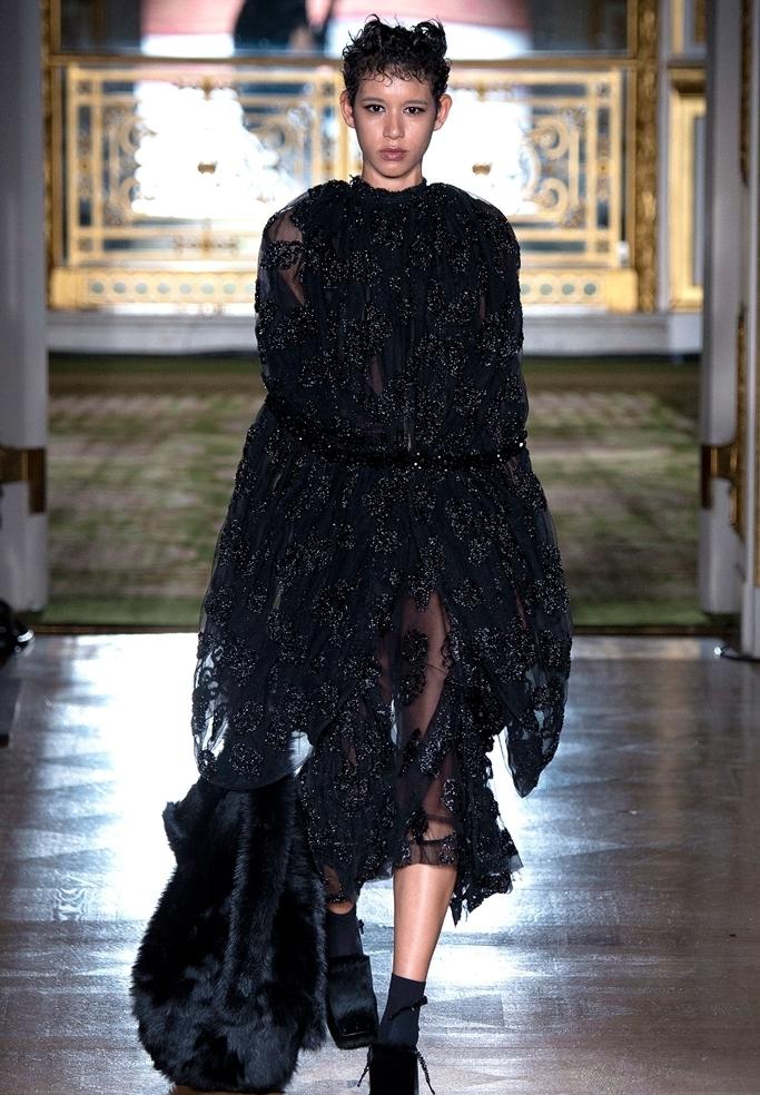 浪漫主義以及哥特時期標志性的綻放花卉與黑色蕾絲薄紗,系列還有著維多利亞式的黑色裙擺。雖然曼妙迷人,但那透視薄紗帶來禁欲感,打造出另類的復古優雅。