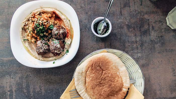 特別推薦這家的皮塔餅(Pita)和鷹嘴豆泥(Hummus)。皮塔餅據說是一種來自中東的食物,說是餅,其實更像是三明治面包,就是面包里面夾著奶酪和蔬菜。雖然簡單,但是就是超級好吃。鷹嘴豆泥呢,也是很簡單的食材,就是鷹嘴豆磨成泥,淋上芝麻醬、橄欖油,然后用皮塔餅蘸著吃。說實話,小編覺得還是分開吃比較好吃,不過每個人口味不同,不能強求。最后呢,說說餐廳的用餐環境,店面不大,座位不多,但勝在餐廳位置不錯,氛圍比較放松,舒舒服服地享受美食。這家小店基本消費在£10以下,良心價,很值。
