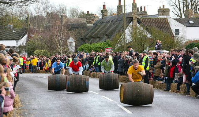 而在英國的威爾士,所有人會在Boxing Day這天齊聚在市中心或者鎮中心參加滾木桶比賽。小編有幸在威爾士過了一次圣誕節,也參與過這樣一次傳統的活動。滾木桶比賽分為男女兩組,小朋友會有自己的場地進行比賽。現場即時報名,即時參賽,滾木桶的場地多是由草垛搭建而成,而比賽的內容就是用盡各種辦法把木桶滾到終點。雖然比賽看起來很是無聊透頂,但是威爾士人對此仍舊樂此不疲。