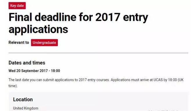 2017年秋季入學的課程,最后申請截止日期是:2017年9月20日18:00 (UK time)。