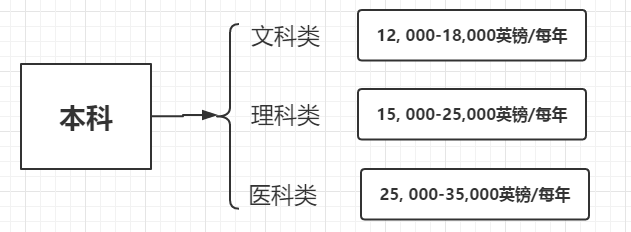 碩士:總體來說是9000-35000英鎊左右