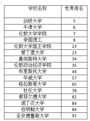 以上便是世界名校前100名英國學校的名額了。