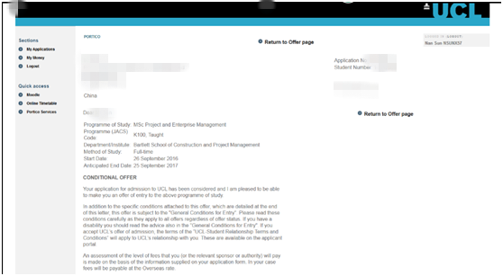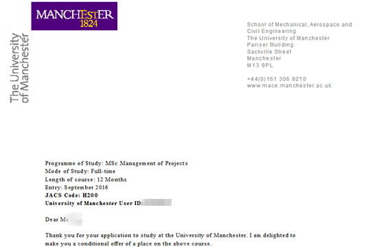 ?申請過程:孫同學來咨詢的時候,大概背景就是以上的情況,謝老師根據他的情況很快做了定位,學生是工程背景,如果想轉商科,那么管理學或者是項目管理會比較合適。定好專業,謝老師給學生定位了沖刺倫敦大學學院,華威大學,曼徹斯特大學,倫敦大學國王學院專業為:項目管理專業。(project management msc)而布里斯托,南安普頓,謝菲爾德,格拉斯哥,則申請純管理專業。(management msc)