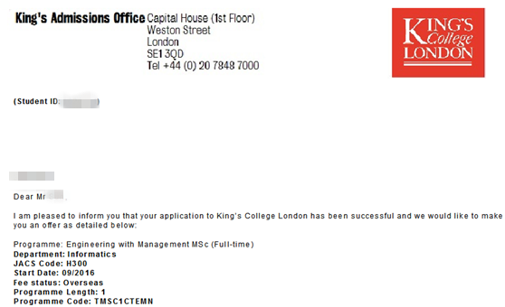 KCL offer