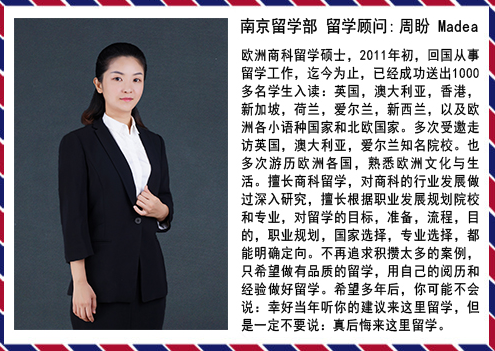 優(yōu)越留學(xué)Nina老師: 張同學(xué),南京農(nóng)業(yè)大學(xué),國(guó)際貿(mào)易專業(yè),均分86,成功收獲Edinburgh大學(xué)Msc Management專業(yè)的offer;