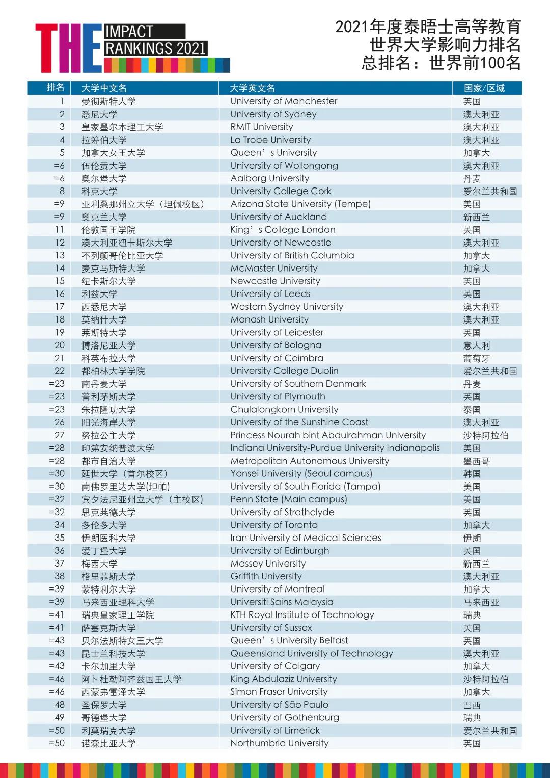 而今年的榜首是來自英國的曼徹斯特大學(xué),這也是英國大學(xué)在影響力排名中排名榜首。