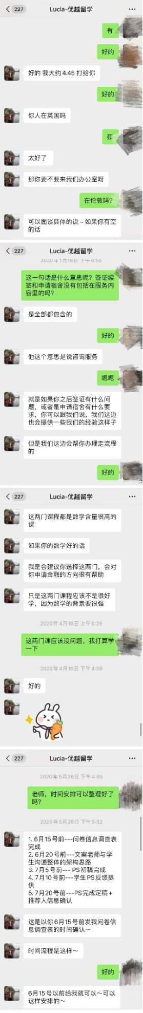 優越打動我的理由有很多:第?,優越在國內和英國都設有辦公室的,?且深耕英國留學申請很多年,對于當時在英國留學的我來說,我覺得可以不?擔?時差的問題,隨時溝通,就能夠??提?申請的效率;第?,在前期我與我的顧問Lucia咨詢的過程中,她的熱情真的打動了我,真的做到了有問必答,這真的給了我很?的信?相信后續的申請過程中,我可以隨時聯系我的申請團隊,?且他們也能過及時的解決我的問題以及給我提供幫助。這個真的是?伙伴們在前期和中介溝通的時候就很需要注意的問題,我們可以嘗試著問問?些申請相關的問題,例如把??的background告訴咨詢顧問,看顧問能不能根據??的背景和優劣勢來初步提供?個合理的選校?案,也可以問問中介對于申請的流程和時間節點的問題,雖然這些都是很基礎的問題,但是真的能過看出?個中介的態度和專業程度。?且,還可以參考中介以往成功的申請案例,看是否有與??專業背景相符合的,這樣的話,我們也可以知道這個中介和顧問?師擅?于什么?向和專業,這樣也能選擇出和??適配度最?的;第三,選擇優越很重要的?點就是優越的?書服務。?家都知道,?書是申請中?分重要的?環,特別是英美申請中。如果說績點,語?成績是我們的硬件的話,那么?書就是我們申請的軟實?,學校的申請審理官就是靠?書來了解你的性格,對于專業的理解,對于??未來的職業學習的規劃,這個時候我們是否能夠靠?書來塑造出?個?體的形象來打動審理官就顯得?關重要了。在和Lucia咨詢的過程中,她給我展示了?部分優越的?書團隊所寫的以及修改的?書,清楚的?書結構,縝密的語句邏輯,精準地道的?詞,也更加堅定了我選擇優越的決?。?且,優越還可以提供專?的外籍?書顧問團隊,這對于對?書要求很?的?伙伴真的是?個很不錯的選擇。