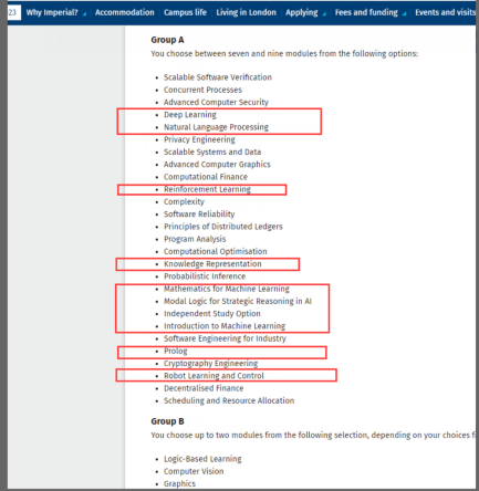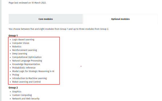 而MSc Advanced Computing的課程設置中,僅Group A就有十節課和MSc Computing Artificial Intelligence相同。