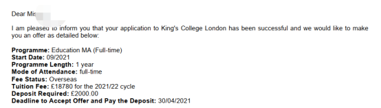 錄取院校: UCL、王愛曼Education碩士offer大滿貫