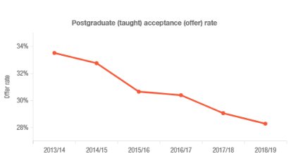 倫敦大學學院,CWUR排名全球第21,英國第3,是一所綜合性大學,所有的教育學院更是連續八年在學科排名中獲得全球第一。UCL相對來說是G5成員在申請中對學生比較友好的一所院校,同樣也是一所超熱門的申請院校,但同樣無法避免的是從官網數據能看到他的錄取率仍然是持續下降。
