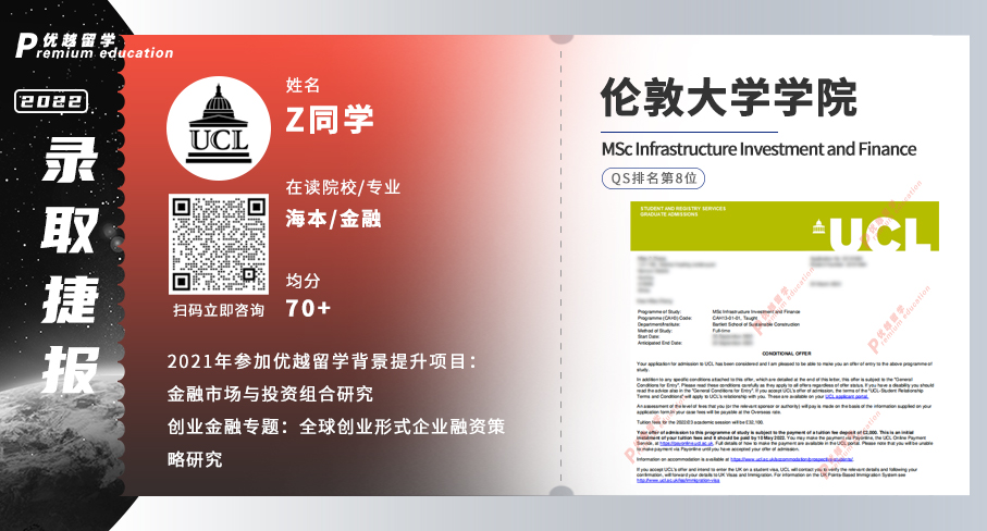 國內211院校,會計學(ACCA方向),均分85,軟背景提升方面參與過優越提供的《投資決策:企業價值與盈利能力研究》項目研究,最終獲得Electronic and Electrical EngineeringFinance MSc專業offer。由于該專業的就業方向十分廣泛,國際國內銀行、國內各大證券公司都是不錯的選擇。