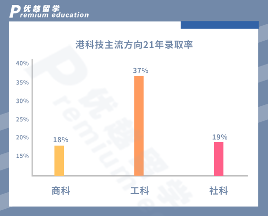 根據優越內部的申請數據可以看到,港科技的工科錄取比較高,offer主要集中在機械、航空等專業,港科技申請者的多數是985/211的工科背景,商科和社科的錄取率比較平均,港科技的社科可申請的專業比較少。