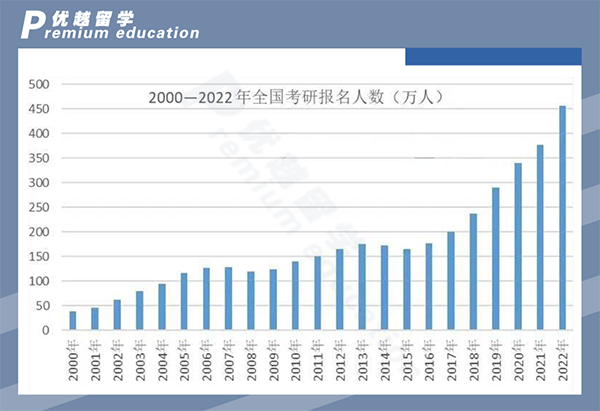 21年考研人數(shù)首次突破300W大關(guān),2022年全國碩士研究生報名人數(shù)突破457萬,比2021年增長80萬,增幅為21%。