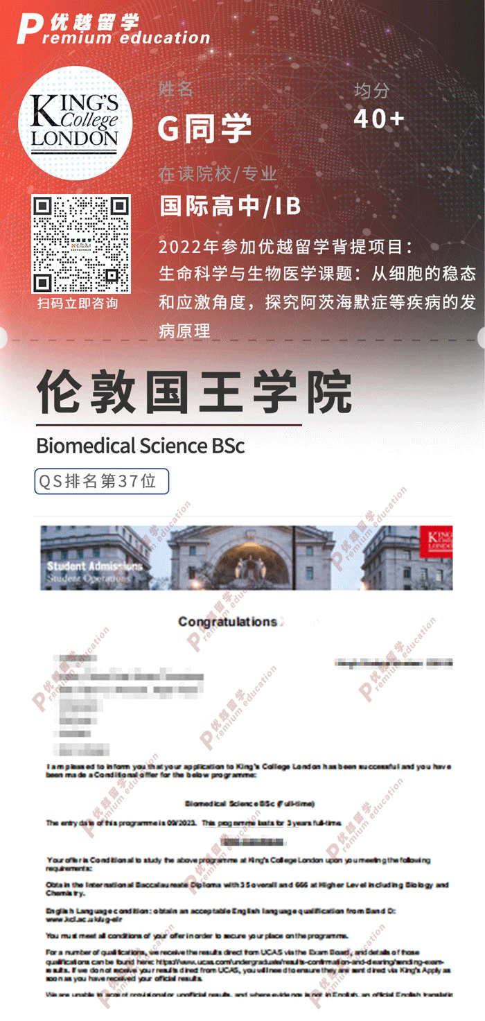 定校時顧問根據同學的軟背景和個人意愿,將KCL作為沖刺院校,同時選定澳洲三個金融類項目作為保底申請。因為澳洲學校排名占優(yōu)勢,難度又較低,專業(yè)對口性的限制又更低,非常適合學生的情況作為備選。最后三所保底院校的offer都收入囊中,更是驚喜拿下了KCL的錄取。
