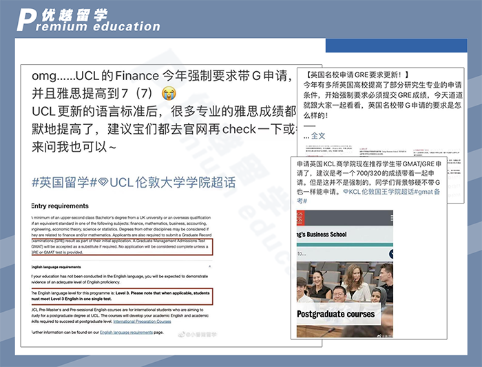 23fall英國(guó)研究生申請(qǐng)在新增list、雅思提高的夢(mèng)幻開(kāi)局后,英國(guó)熱門(mén)院校又開(kāi)始向GMAT/GRE下手了!雖然之前大多英國(guó)專(zhuān)業(yè)都是不強(qiáng)制需要GMAT/GRE的,但今年也有以UCL為首的院校也將推薦提供GRE/GMAT申請(qǐng),改成英國(guó)研究生申請(qǐng)必須要帶上才能申請(qǐng)。