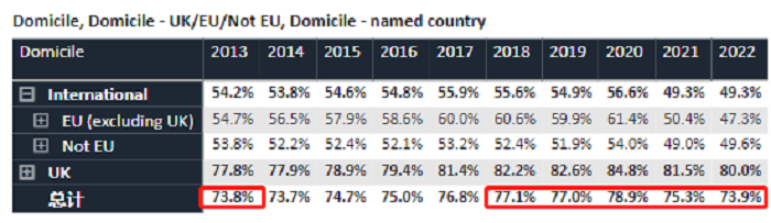 2022年度UCAS共收到了3048480份申請(qǐng),共發(fā)放了1980590份offer,官方公布的offer率約為65%,比前一年下降了3.6%。