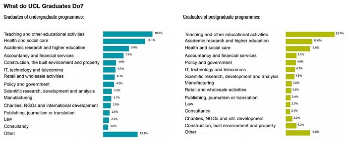 倫敦大學學院在學校官方網上公布了本科和碩士畢業生的就業去向數據。