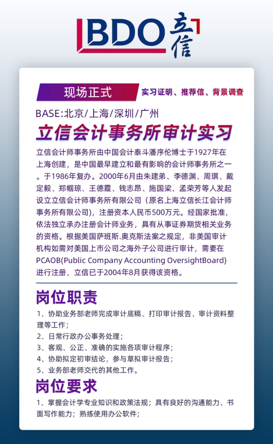 根據同學的情況,老師幫他在眾多實習項目中篩選到了八大會計師事務所的立信,在幾個月的實習中,同學協助了業務部的老師完成了審計底稿、打印了審批報告、也完成了審計資料整理等基礎性的工作;當然,同學也參與了各項審計程序的實施,協助老師擬定了初審結論、也參與了審計報告的草擬。