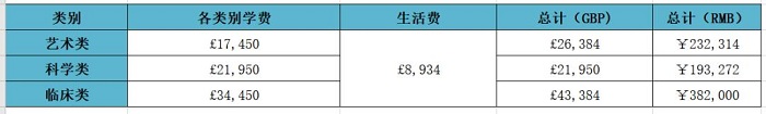 5、英國各地區留學費用匯總