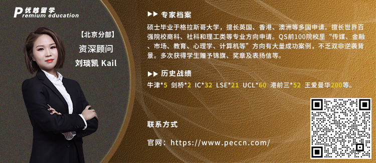 Kail老師本科畢業(yè)于國內(nèi)211大學(xué),碩士畢業(yè)于格拉斯哥大學(xué),擅長英國、香港、澳洲等多國申請。在優(yōu)越工作多年,擅長碩士英國留學(xué)高端申請,針對不同背景的學(xué)生能給到最專業(yè)的方案指導(dǎo)。QS前100院校里“傳媒、金融、市場、教育、心理學(xué)、計算機(jī)等”方向有大量成功案例,不乏雙非逆襲背景。多次獲得學(xué)生贈予錦旗、獎?wù)录氨頁P(yáng)信等,擅長世界百強(qiáng)院校商科、社科和理工類等專業(yè)方向申請。