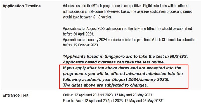 新加坡國立大學今年比較慷慨,提前放出了3個24Fall提前批專業。NUS官網表示:23fall申請截止日期為2023年4月30日,在2023年4月30日之后申請該專業(全日制),作為下學年24fall的提前批優先申請。
