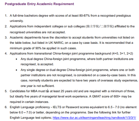 埃克塞特大學(xué)商學(xué)院錄取要求:
