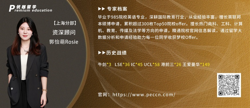 優越留學的Roise老師畢業于985院校英語專業,具有深耕國際教育行業的經驗。她在英聯邦本科、碩士和博士申請方面擁有豐富的從業經驗,成功累積超過300個Top50院校的錄取通知書。Roise老師擅長指導熱門商科、工程科學、計算機科學、教育學、傳媒學和法學等領域的申請,并且她精通解讀院校官網信息,借助留學大數據分析和豐富的中請經驗,為每一位學生助力,幫助他們獲得夢校的錄取通知書。