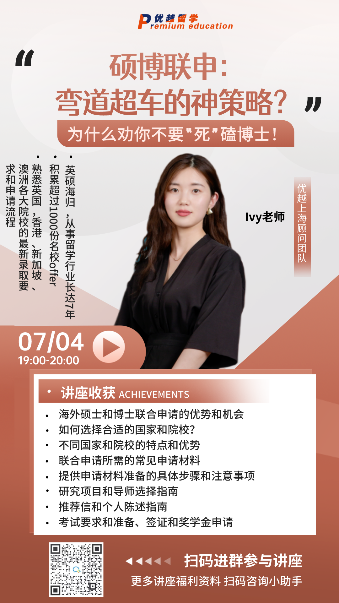今晚7點蹲守優(yōu)越直播間,聽聽優(yōu)越資深顧問的?碩博聯(lián)申?專題線上講座~