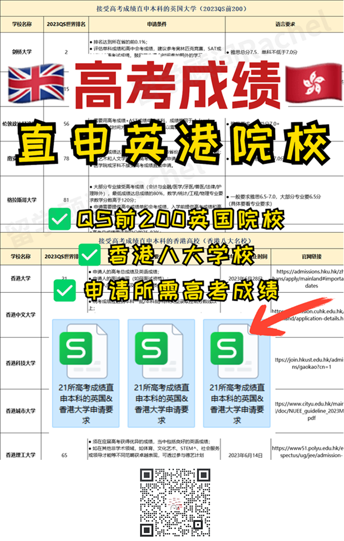 優(yōu)越小編為大家整理了接受高考成績直申本科的QS前200英國大學(xué),想了解具體條件的朋友可以掃描下圖二維碼免費(fèi)領(lǐng)取。